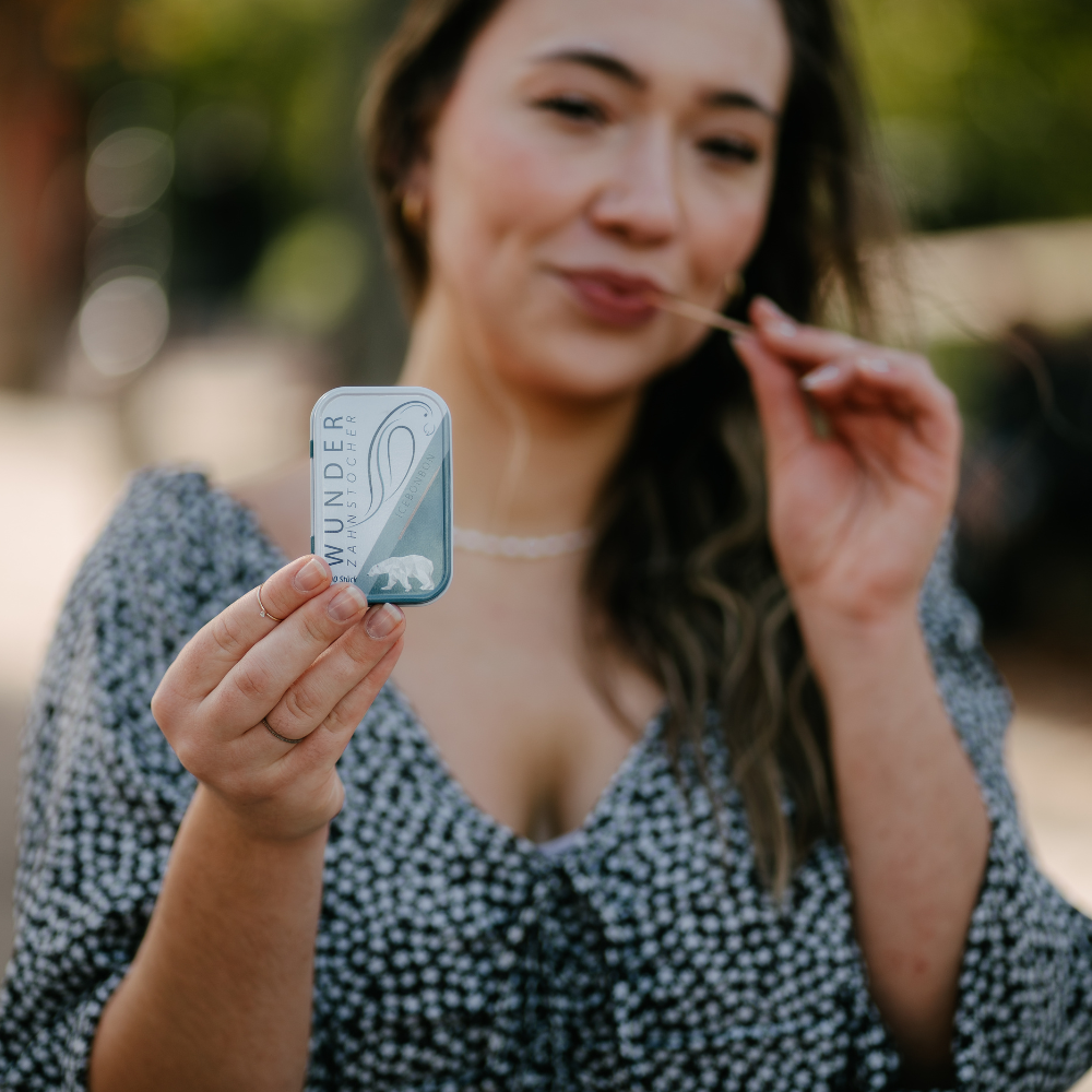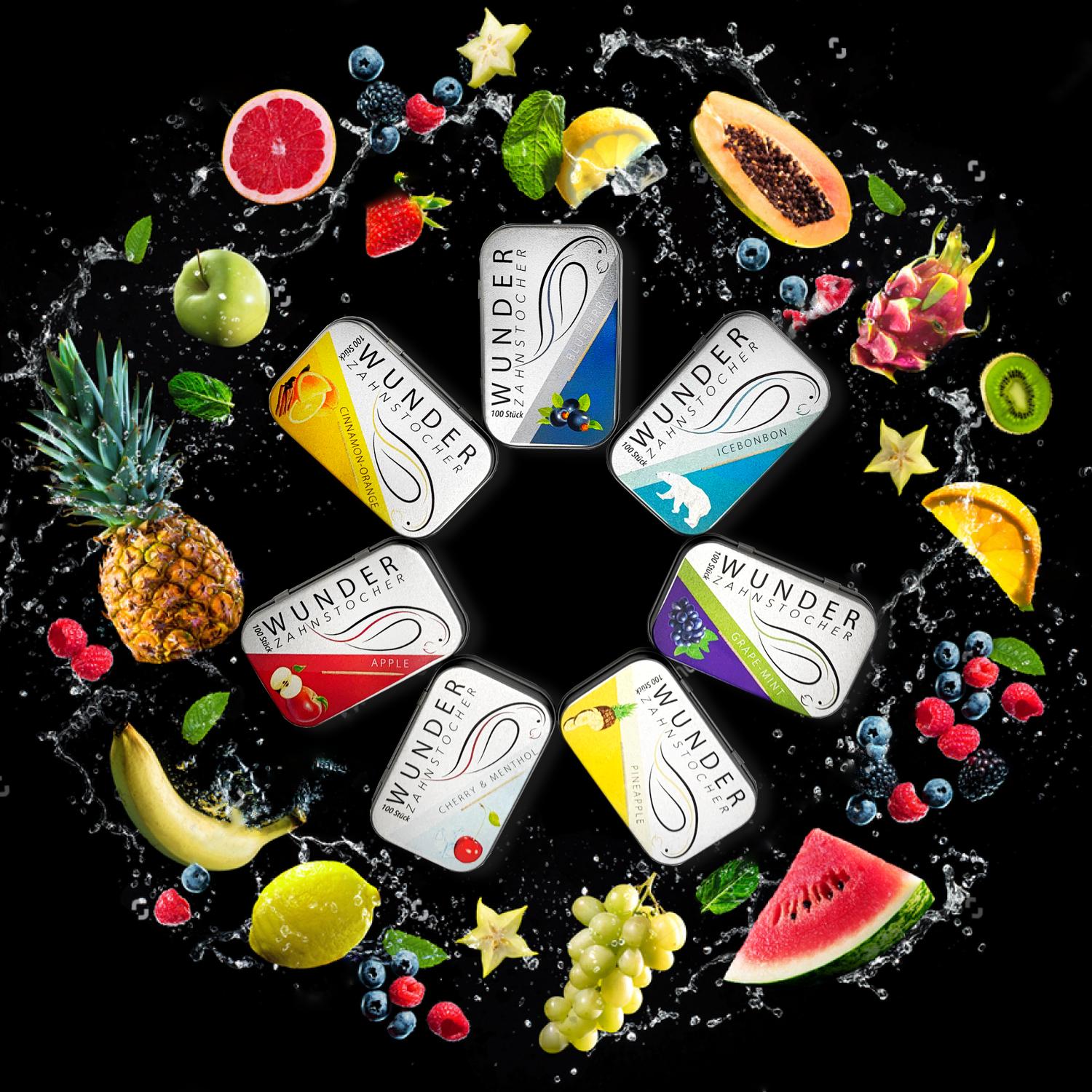 Die aromatisierten Zahnstocher von Wunder bieten Dir in jeder Situation einen einzigartigen Frischekick und einen natürlichen Geschmack im Mund.